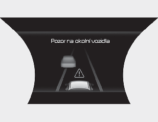 V následující situaci se na přístrojovém panelu zobrazí varovná zpráva „Watch for surrounding vehicles“ (Sledujte okolní vozidla) a zazní zvukový signál jako výstraha pro řidiče ohledně dopravní situaci před ním.