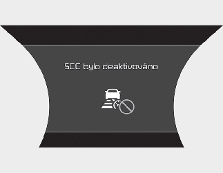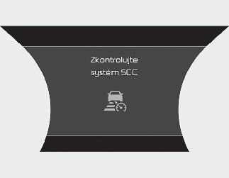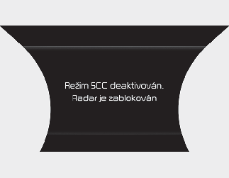 Pokud tato situace nastane, zobrazí se na přístrojovém panelu varovná zpráva „Smart Cruise Control disabled. Radar blocked obscured“ (Systém adaptivního tempomatu byl vypnut. Radar je zablokovaný nebo zakrytý.) nebo „SCC (Smart Cruise Control) disabled. Camera obscured“ (Systém SCC (adaptivní tempomat) byl vypnut. Radar je zablokovaný.) a rozsvítí se varovné kontrolky.