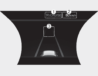 CRUISE. (2) Předchozí nastavená rychlost se zobrazuje šedě.