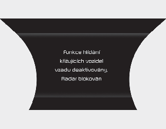 Systém varování před kolizí s projíždějícím vozidlem vzadu nemusí fungovat 3 sekundy po nastartování vozidla nebo po aktivaci zadních radarových čidel.
