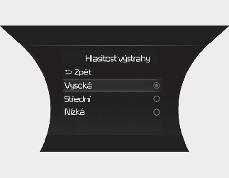 Pokud změníte nastavení hlasitosti výstrahy, může se změnit i hlasitost výstrah jiných asistenčních funkcí.