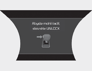 Press UNLOCK to change gear (Chcete-li přeřadit, stiskněte tlačítko odemknutí)