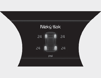 Kontrolka nízkého tlaku v pneumatice prostřednictvím rozsvícení odpovídající polohy označuje, která z pneumatik je výrazně podhuštěná.