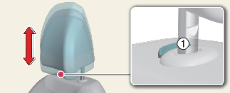 Maintenez le bouton de déverrouillage (1) enfoncé pendant que vous relevez l'appuie-tête.