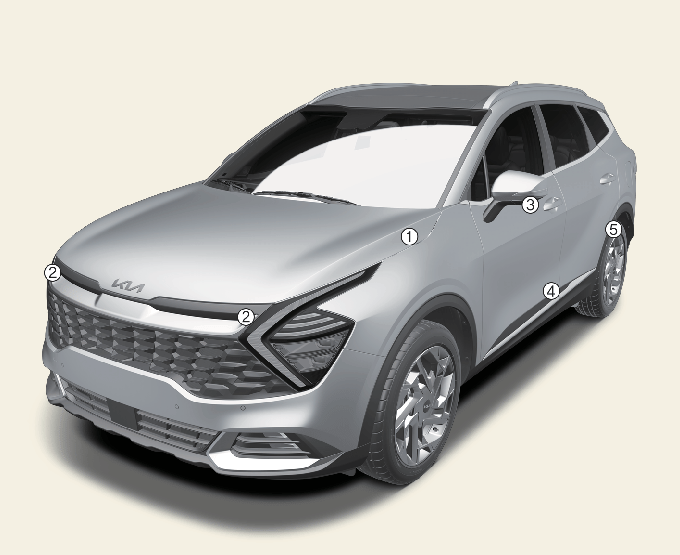 Votre véhicule est conçu pour absorber les impacts et déployer les airbags dans certaines collisions. Utilisez uniquement des pièces d’origine Kia ou celles d’une norme équivalente pour installer des protections de pare-chocs ou remplacer un pare-chocs. Sinon, cela peut nuire aux performances de collision et de déploiement des airbags de votre véhicule.