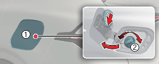 Appuyez sur le bord central arrière de la trappe de remplissage de carburant (1).