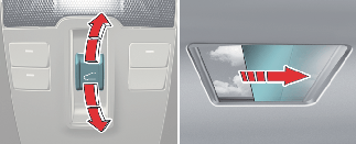 Pour arrêter le déplacement du pare-soleil électrique à n'importe quel moment, poussez le commutateur de toit ouvrant dans n'importe quelle direction.