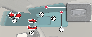 Pour utiliser le miroir de courtoisie, baissez le pare-soleil et faites glisser le cache du miroir (4).