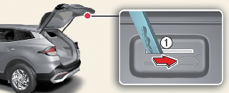 Faites glisser le loquet dans le sens de la flèche pour déverrouiller le hayon.