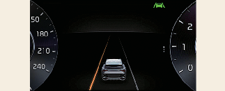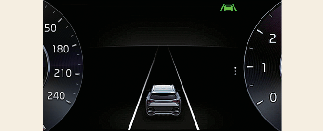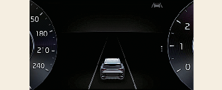 Lorsque des marques de voie (ou des bords de route) sont détectées, les lignes de voie sur le combiné d'instruments passent du gris au blanc et le voyant vert (