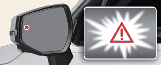 Pour alerter le conducteur d'un véhicule qui approche à gauche ou à droite à l’arrière, le témoin dans le rétroviseur extérieur clignotera et un message d'avertissement apparaîtra dans le combiné d’instruments. Au même moment, un signal sonore retentira et le volant se mettra à vibrer (si équipé). Si la caméra de recul est activée, un message apparaîtra également sur l'écran du système d'info-divertissement. (si le véhicule en est équipé)