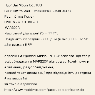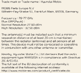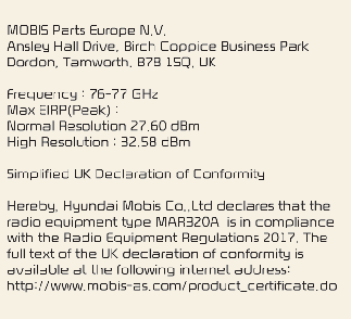 Les composants de fréquence radio (radar d'angle arrière) sont conformes (Type A) :