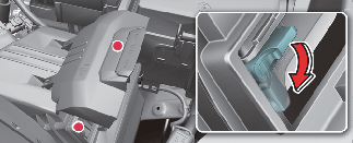 Tirez vers le haut le levier (1) du cache de filtre à air et relâchez le verrou.