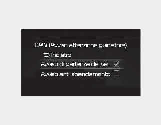 Se la funzione ‘Leading Vehicle Departure Alert’ (Avviso di partenza del veicolo che precede) è selezionata, informerà il conducente quando il veicolo di fronte parte da una sosta.