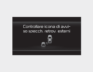 Quando la spia dello specchietto laterale non funziona correttamente, sul quadro strumenti viene visualizzato il messaggio di avviso "Check side view mirror warning light" ("Controllare la spia dello specchietto retrovisore laterale"). Far ispezionare il veicolo da un'officina professionale. Kia consiglia di rivolgersi a un concessionario/centro di assistenza partner autorizzato Kia.