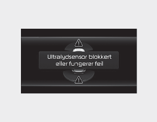 Sensoren er tildekket av fremmedlegemer, for eksempel snø eller vann (advarselssystemet for parkeringsavstand bakover vil fungere normalt igjen når fremmedlegemene er fjernet).