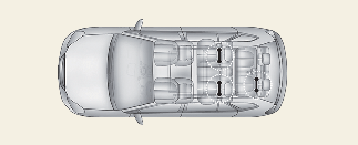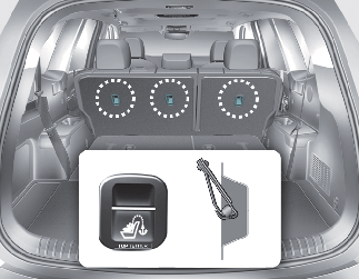Los anclajes LATCH se encuentran en las posiciones de asiento exterior izquierda y derecha de la 2.ª fila y la exterior izquierda de la 3.ª fila. Las ubicaciones se muestran en la ilustración.