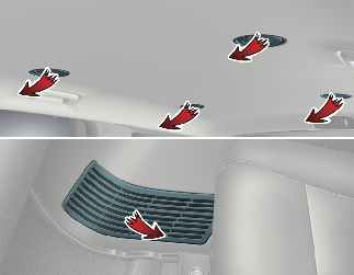 : el aire trasero sale de los difusores superiores del techo trasero y de los difusores inferiores.