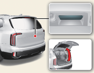 Si está desbloqueado, el portón trasero puede abrirse pulsando la manilla y tirando de ella hacia arriba.