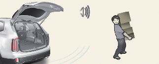 Cuando el portón trasero esté abierto, acérquese al área de detección que son 50~100 cm (20~40 pulgadas) desde detrás del portón llevando la llave inteligente encima. Espere aproximadamente 3 segundos a que suene la señal acústica.