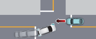 Al girar a la izquierda en un cruce con el intermitente encendido, el vehículo ayudará al conductor a controlar el frenado para mitigar o evitar una colisión con un vehículo que se acerque.