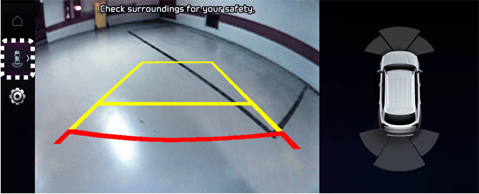 La marcha ha cambiado a R (marcha atrás) y el icono se selecciona entre los botones de visión.