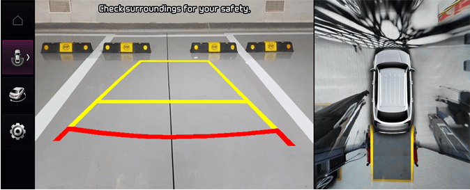 La advertencia de la distancia de estacionamiento se muestra en el lado derecho de la pantalla del monitor con vista de 360°. Advertencia de la distancia de estacionamiento está seleccionado.