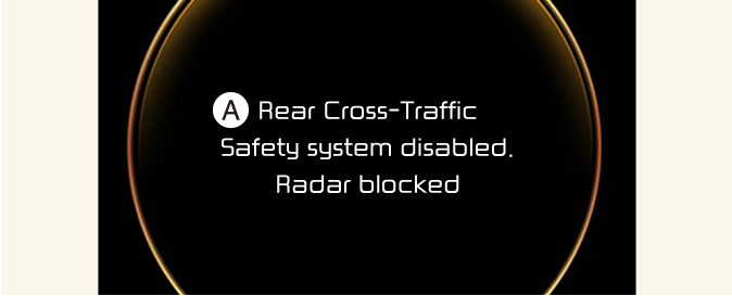 A: Sistema de seguridad de tráfico cruzado trasero deshabilitado. Radar bloqueado