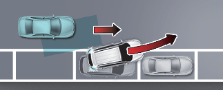 Al conducir hacia delante para salir de una plaza de aparcamiento, si la asistencia de prevención de colisión en el punto ciego considera que existe un riesgo de colisión con un vehículo que se aproxima por el punto ciego, la función podrá ayudará a evitar la colisión accionando el freno.