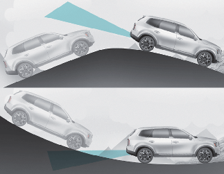 Es posible que la asistencia de prevención de colisión en el punto ciego no funcione correctamente al conducir por una carretera en pendiente. La función podría no detectar el vehículo en el carril contiguo o podría detectar de forma incorrecta el suelo o la estructura.