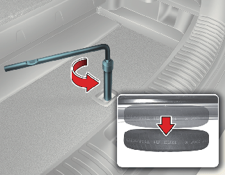 Gire la herramienta en sentido antihorario hasta que el neumático de repuesto entre en contacto con el suelo.