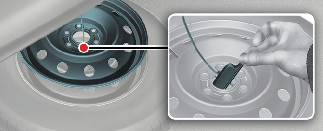 Retire el retén del centro del neumático de repuesto.