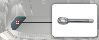 Abra el portón trasero y extraiga el gancho de remolque de la caja de herramientas.