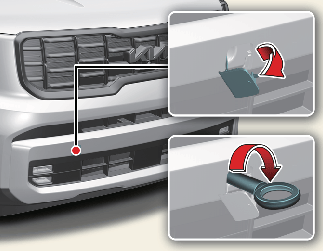 Extraiga la cubierta del orificio presionando la parte superior de la cubierta en el parachoques delantero o trasero. Instale el gancho de remolque girándolo en sentido horario en el agujero, hasta que esté totalmente seguro.