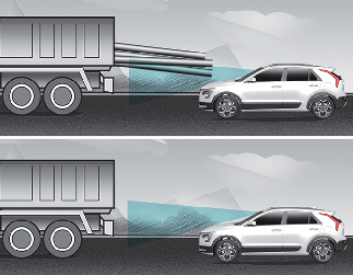 If the vehicle in front of you has cargo that extends rearward from the cab, or when the vehicle in front of you has higher ground clearance, additional special attention is required. Forward Collision-Avoidance Assist may not be able to detect the cargo extending from the vehicle. In these instances, you must maintain a safe braking distance from the rearmost object, and if necessary, steer your vehicle and depress the brake pedal to reduce your driving speed in order to maintain distance.