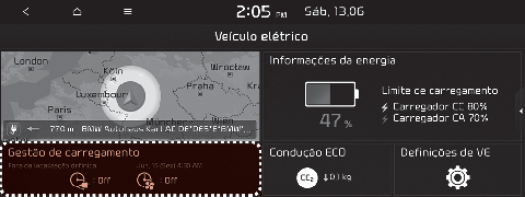 Pode definir a data e a hora para carregar a bateria, a temperatura de controlo da climatização, opções de carregamento com base na localização do veículo e outras funções.