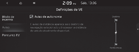 Se o destino definido no sistema de navegação não puder ser alcançado com a bateria restante, é exibida uma mensagem de aviso.