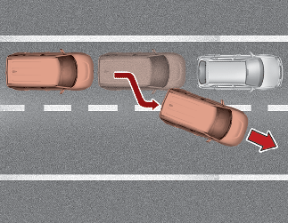 Quando estiver no trânsito em para-arranca e um veículo parado à sua frente sair da faixa de rodagem, a Assistência à prevenção de colisão frontal poderá não detetar imediatamente o veículo que está agora à sua frente. Neste caso, deverá manter uma distância segura de travagem e, caso seja necessário, carregue no pedal do travão para reduzir a sua velocidade de condução, de forma a manter uma distância segura.