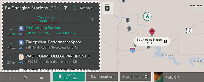 Odaberite ikonu i pogledajte kartu na zaslonu informacijsko-zabavnog sustava. Traže se postaje oko trenutačne lokacije.