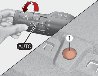 Если переключатель освещения установлен в положение «AUTO», задние габаритные огни и передние фары будут автоматически включаться или выключаться в зависимости от количества света снаружи транспортного средства.