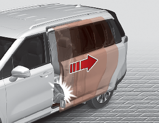 Если при открывании или закрывании дверь с электроприводом заблокирована каким-либо предметом или частью тела, то сдвижная дверь с электроприводом обнаружит сопротивление, прозвучат 3 звуковых сигнала, движение остановится, либо дверь полностью откроется, чтобы можно было удалить мешающий предмет. Однако, если препятствие незначительное, например, небольшой или мягкий объект, или если дверь багажника находится в почти в закрытом положении, система автоматической остановки и изменения направления движения может не обнаружить такое препятствие и продолжит закрытие. Кроме того, в случае сильного удара сдвижная дверь с электроприводом может автоматически остановиться и начать движение в обратном направлении.