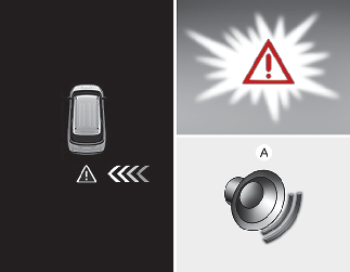 Чтобы предупредить водителя о приближающемся транспортном средстве сзади с левой/правой стороны, индикатор на боковом зеркале будет мигать, а на приборной панели появится предупреждение. Одновременно будет звучать звуковой сигнал. Если включена камера заднего вида, на экране информационно-развлекательной системы появится предупреждение.
