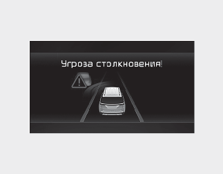 Чтобы предупредить водителя об опасности столкновения, на приборной панели отображается сообщение «Collision warning» (Угроза столкновения) и звучит звуковое предупреждение.