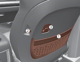 No encosto do banco dianteiro existe uma bolsa dupla (1) para livros e atlas pequenos, um carregador USB (2) e um cabide (3) (se equipados) para os passageiros dos bancos traseiros.