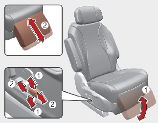 Se premir o interruptor de ativação por um toque (1), o banco retoma a posição anterior. Se premir o interruptor (2), o banco é ligeiramente ajustado para a posição anterior.