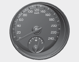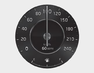 O velocímetro indica a velocidade do veículo, e é calibrado em quilómetros por hora (km/h) e milhas por hora (mph).