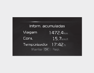 O modo de computador de bordo apresenta informações relacionadas com os parâmetros de condução do veículo, incluindo economia de combustível, informação do conta-quilómetros e velocidade do veículo.