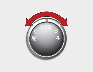 Para mudar a temperatura do ar no habitáculo, rode o botão para a direita para ar mais quente ou para a esquerda para ar mais frio.