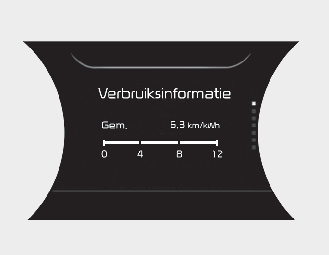 De modus van de boordcomputer geeft informatie weer met betrekking tot de rijparameters van de auto, het gemiddelde energieverbruik, informatie van de dagteller en de rijsnelheid.