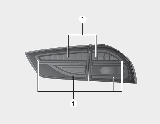 Laat het voertuig nakijken door een professionele werkplaats als het rem- en achterlicht (LED-type) (1) niet werkt. Kia raadt aan om een officiële Kia-dealer/servicepartner te bezoeken.